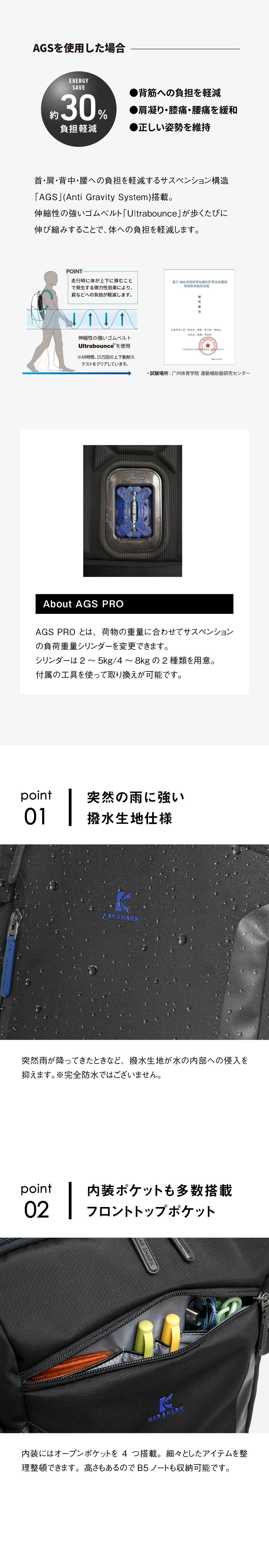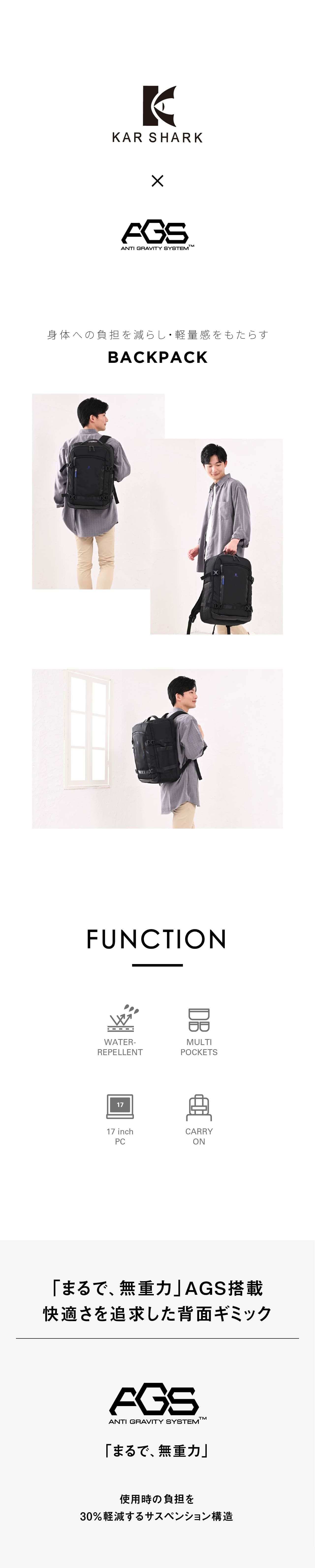 KAR SHARK カーシャーク AGSリュックAGS PRO ビジネスリュック A3 撥水 無重力 NPB24093