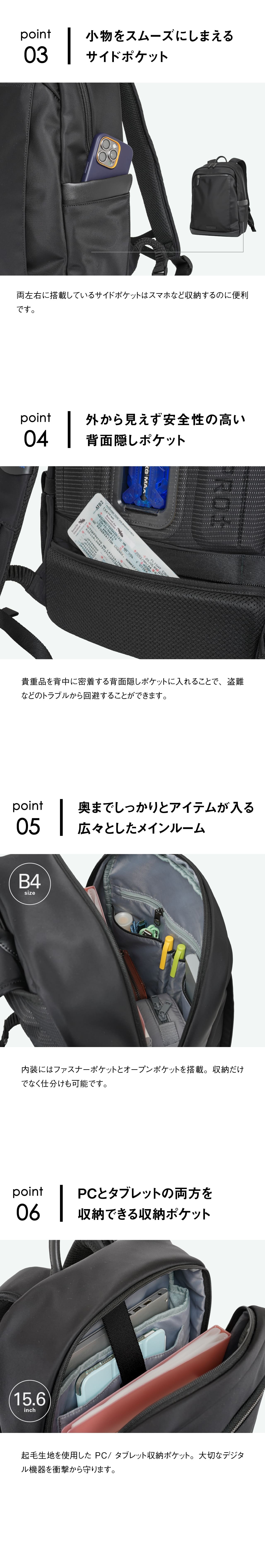 ・PCとタブレットの両方を収納できる収納ポケット(15.6インチPC対応)