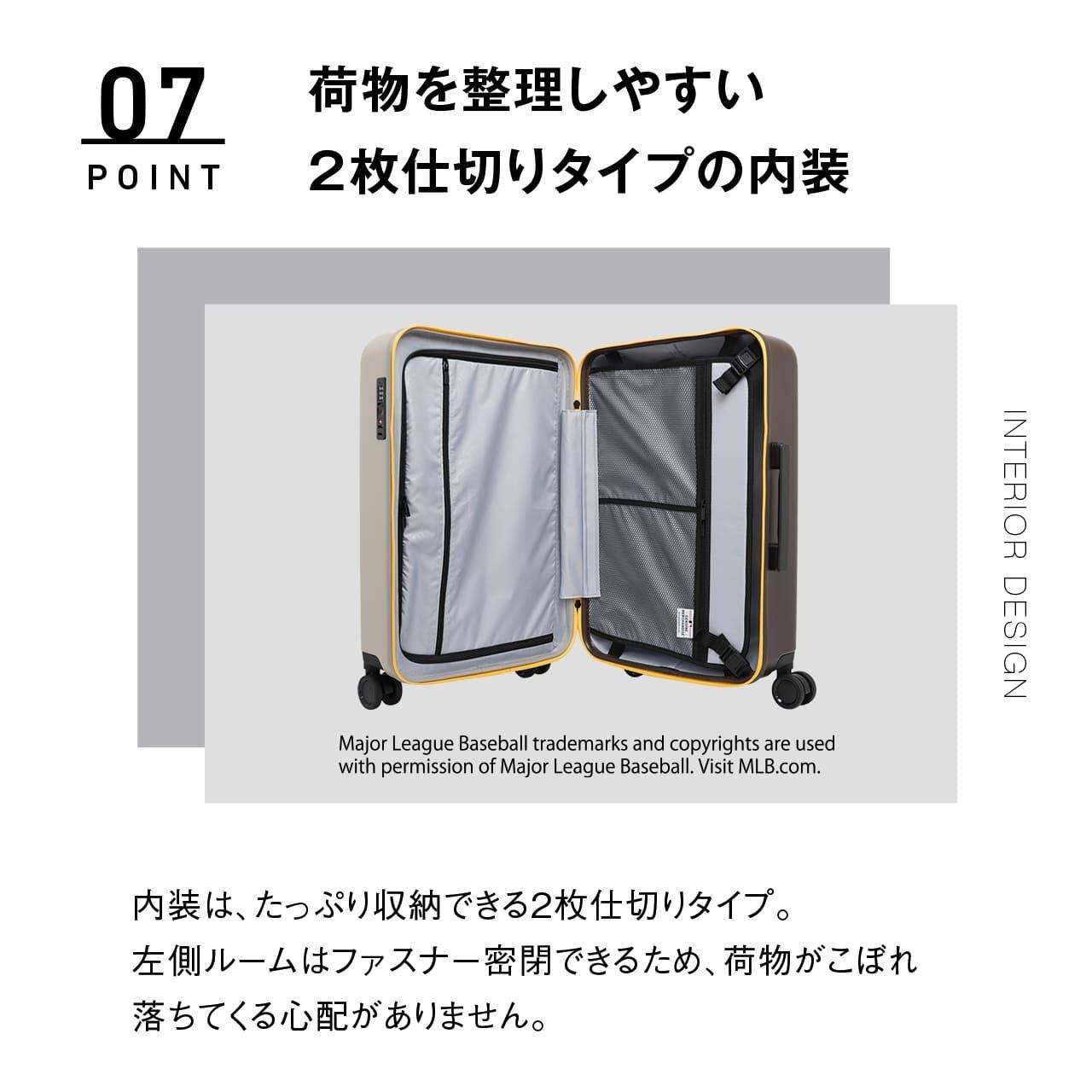・荷物を整理しやすい2枚仕切りタイプの内装