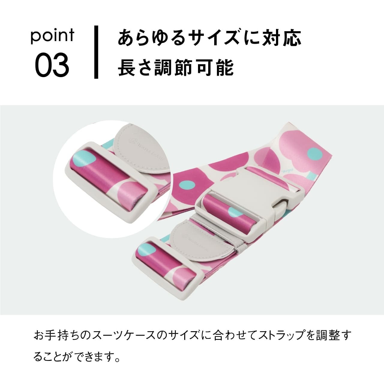 《製品の特長》 ・衝撃で不意に開くのを防ぐしっかり固定 ・シンプルな装着方法 着脱しやすく丈夫で長持ち ・あらゆるサイズに対応 長さ調節可能 ・あでやかで目を引くデザイン