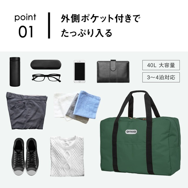 ・外側ポケット付きでたっぷり入る(40L/3~4泊対応)