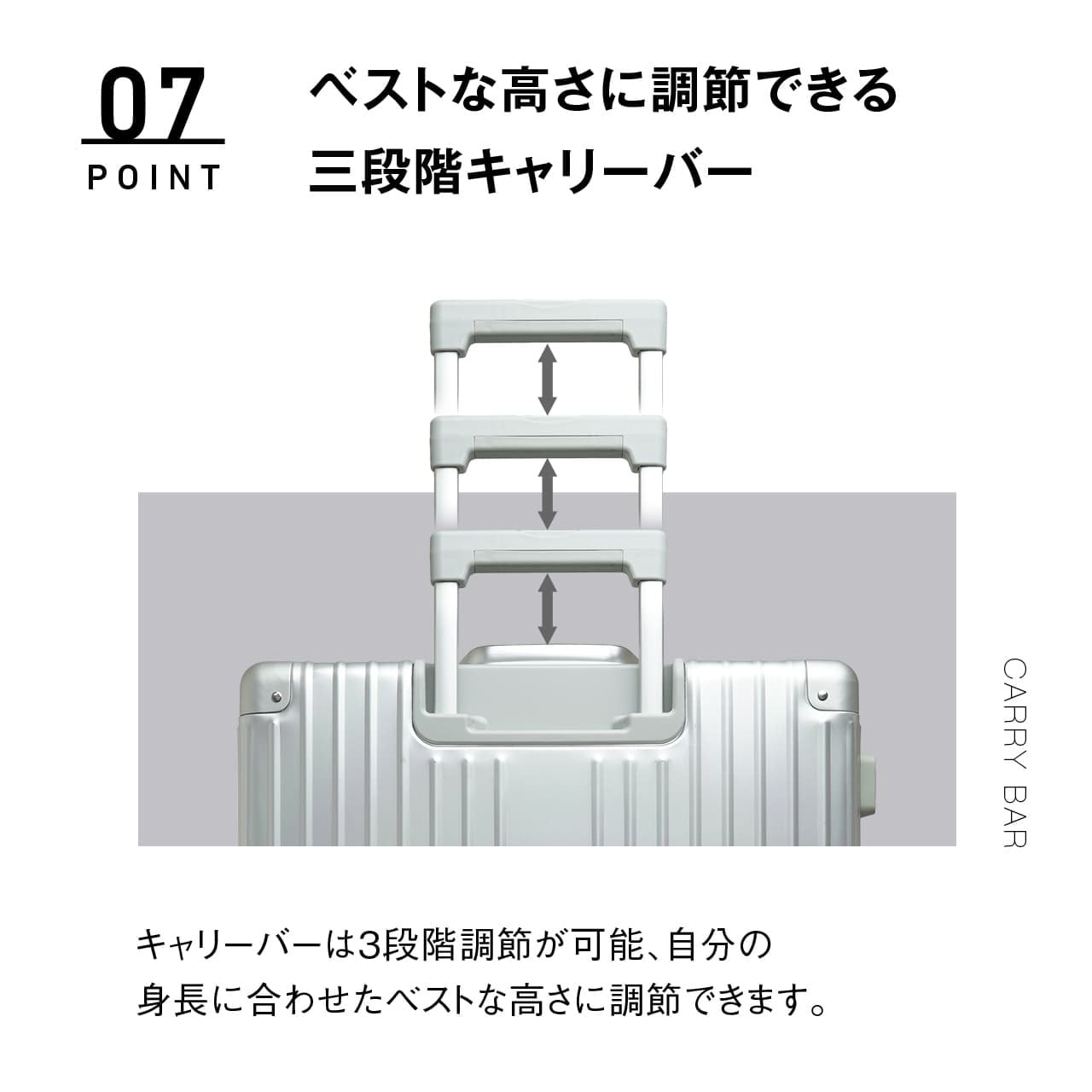・ベストな高さに調節できる三段階キャリーバー