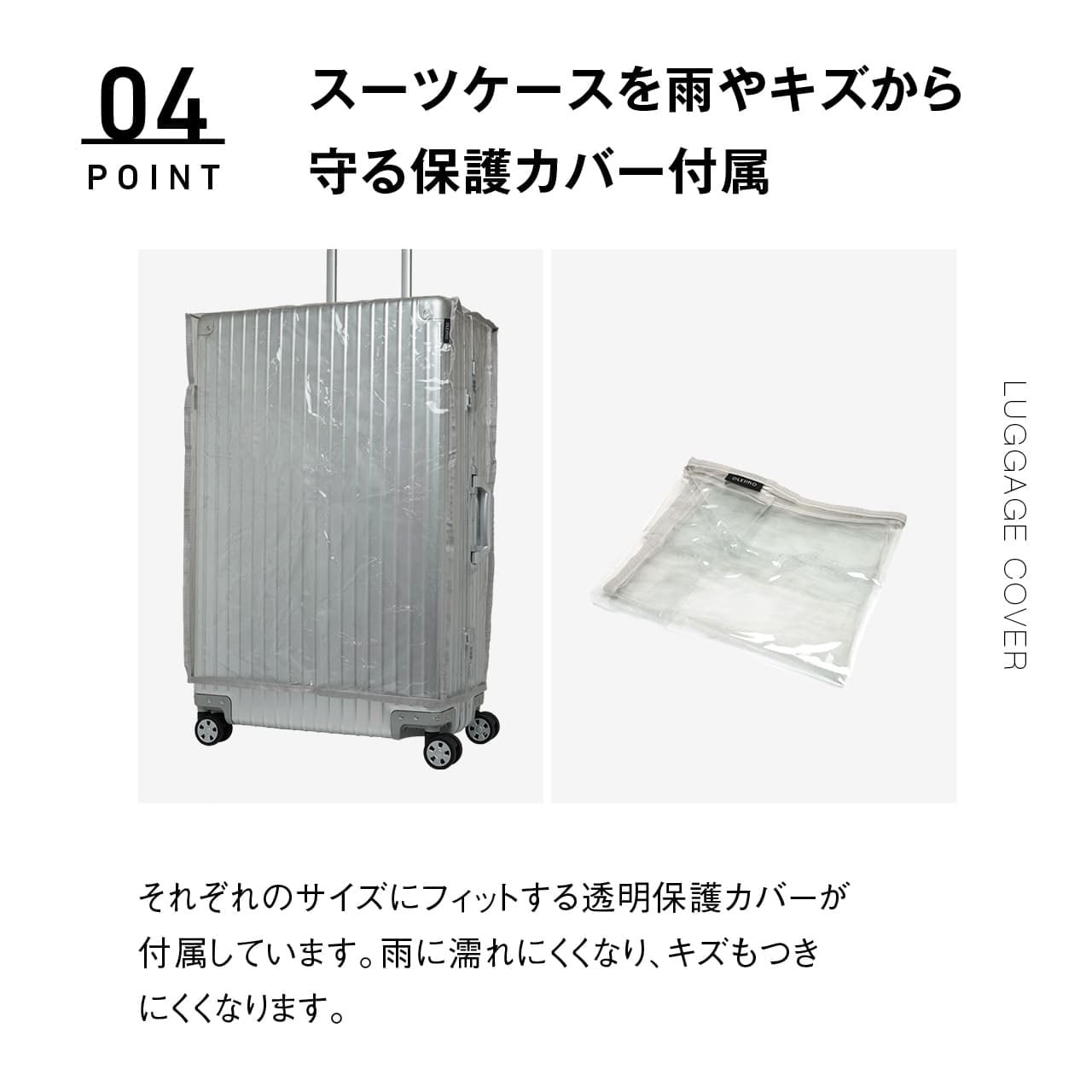 ・スーツケースを雨やキズから守る保護カバー付属