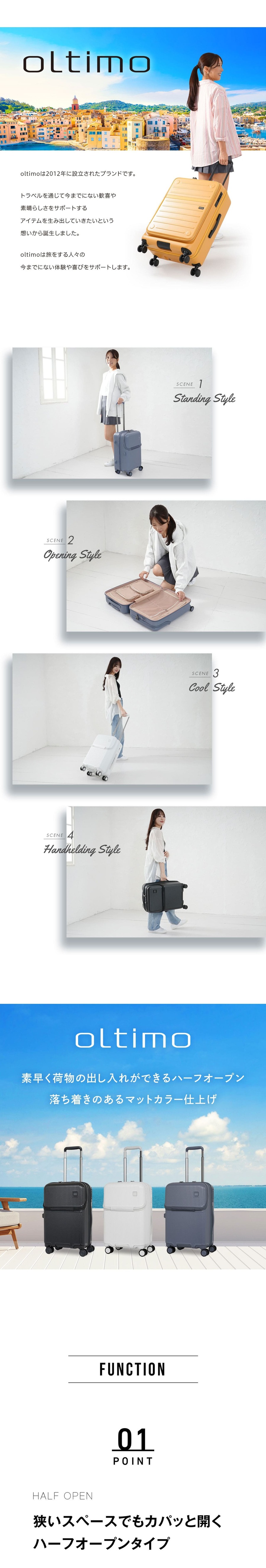 oltimo オルティモ カパッとオープン Version2 機内持ち込み Sサイズ キャリーケース キャリーバッグ 37L ストッパー付き OT-0887-48N