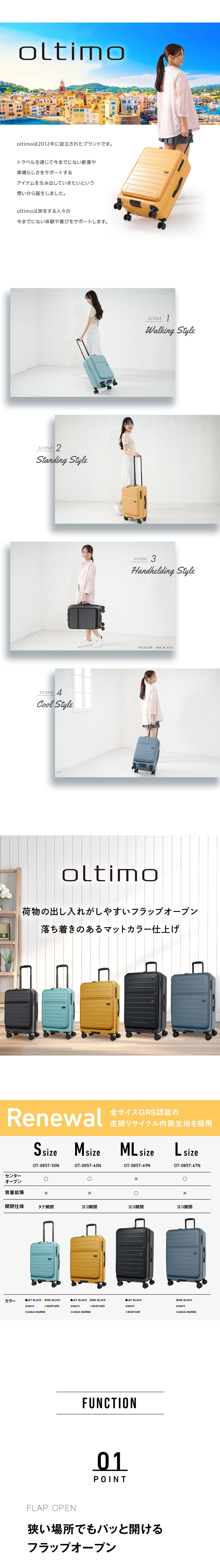 oltimo オルティモ フラップオープン Version2 Sサイズ 37L 機内持ち込み ワンタッチ ストッパー キャリーケース OT-0857-50N