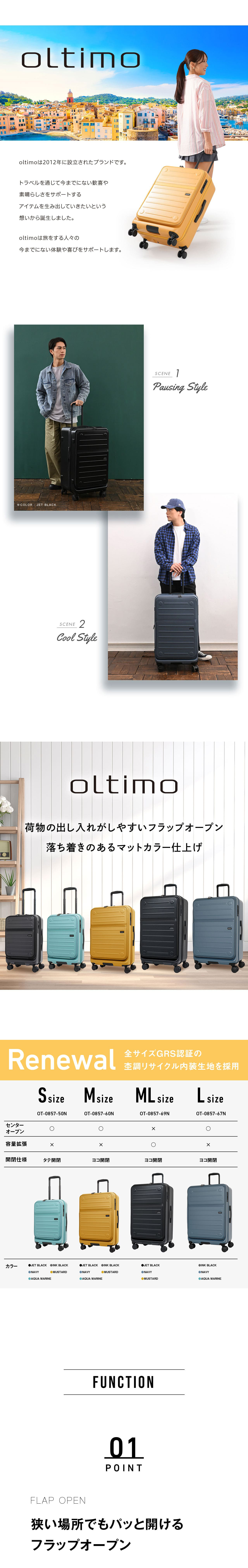 oltimo オルティモ フラップオープン Version2 拡張 MLサイズ 7泊 大型 92L(103L) ストッパー付 フロントオープン OT-0857-69N
