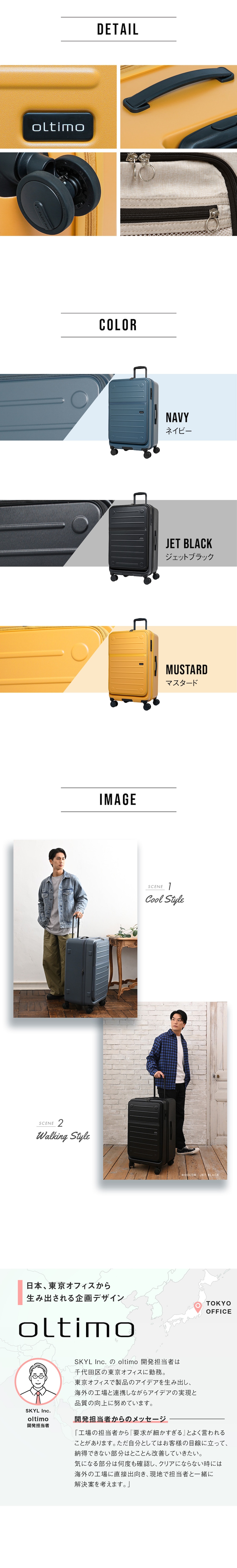 ・ボディの傷が目立たない表面エンボスボディ(マスタード・ネイビーのみ)