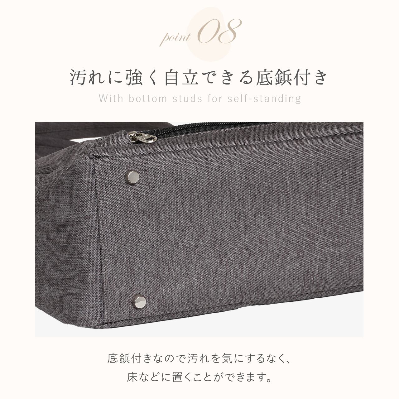 ・汚れに強く自立できる底鋲付き