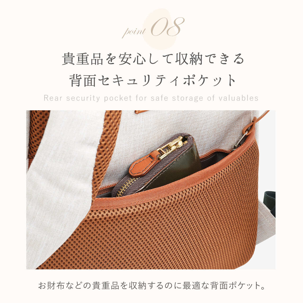 ・貴重品を安心して収納できる背面セキュリティポケット