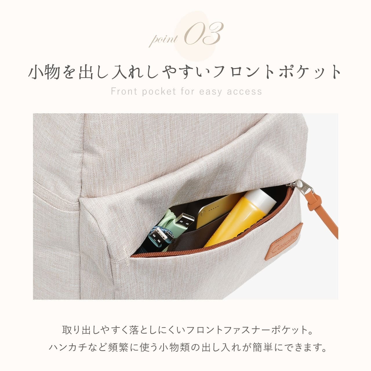 ・小物を出し入れしやすいフロントポケット