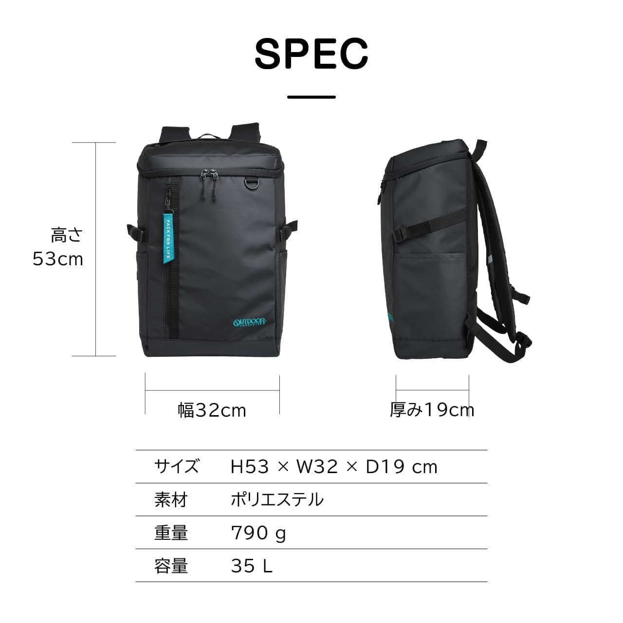 《製品の特長》 ・大容量35L ・雨の日も安心の撥水加工生地 ・いつでも快適 ・体に寄り添う自然なフィット感 ・便利な天面トップポケット ・撥水生地のサイドポケット内装 ・ウレタン入りPCポケット ・おしゃれなアクセントのブランドロゴとチャーム ・夜道も安心のリフレクター ・PCポケットサイズ H46cm(ポケットH37cm)、W27cm