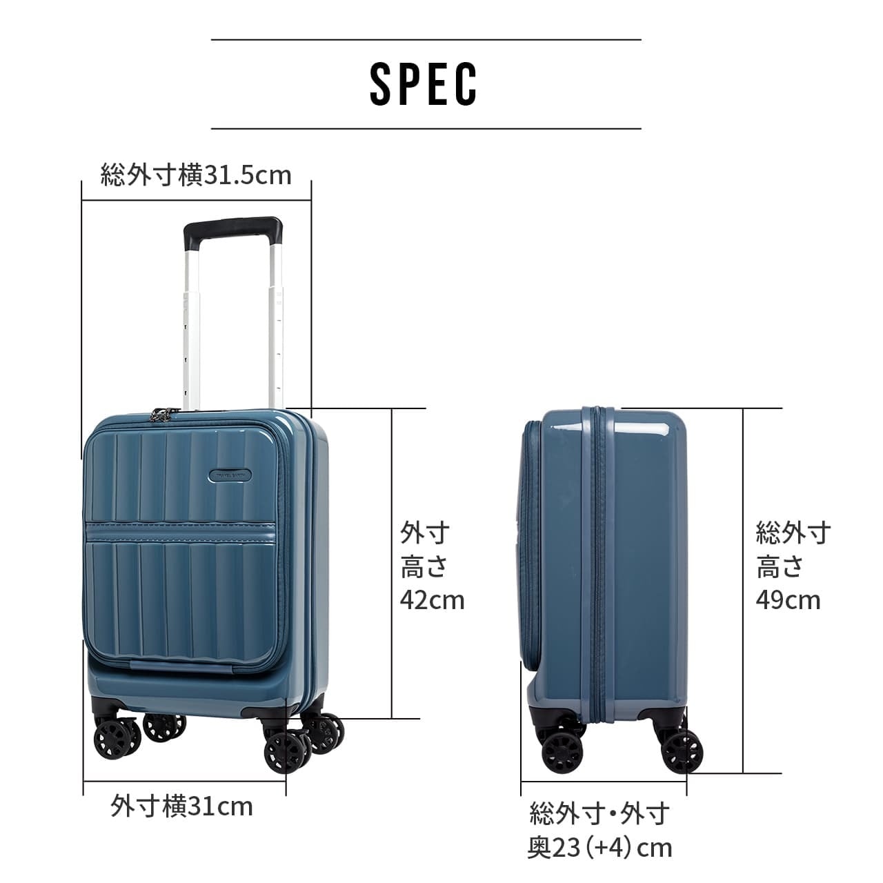 TRAVEL EARTH トラベルアース フラップオープン スーツケース キャリーケース SSサイズ 機内持ち込み LCC対応 コインロッカーサイズ 27(31)L 1~2泊 容量拡張 ストッパー付き TE-0905-42