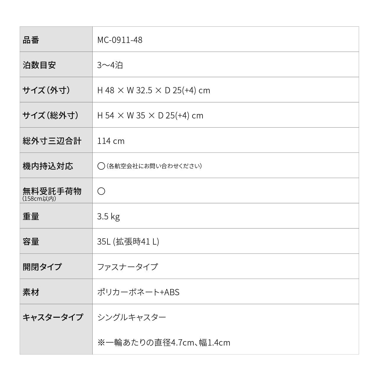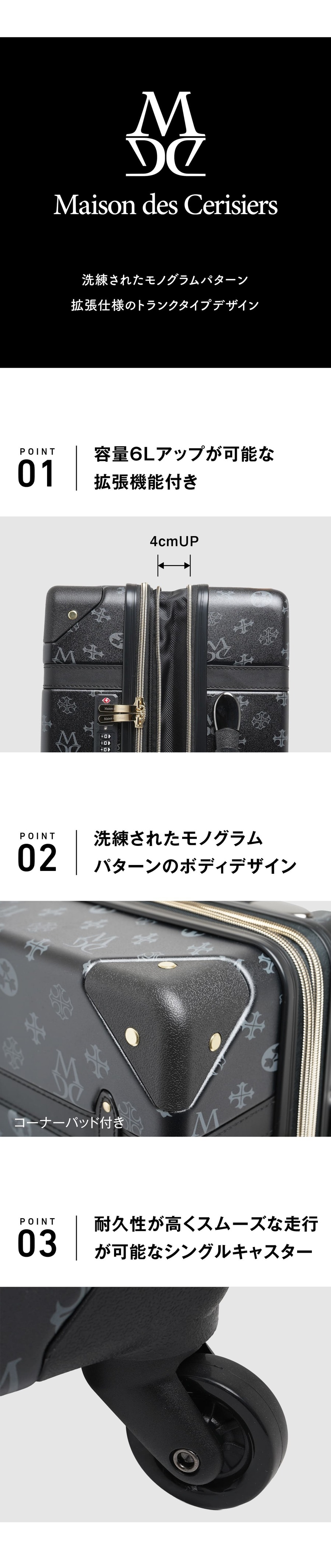 MAISON DES CERISIERS メゾンドセルジュ トランクタイプ スーツケース キャリーケース Sサイズ LCC対応 機内持ち込み 35(41)L 3~4泊 容量拡張 MC-0911-48