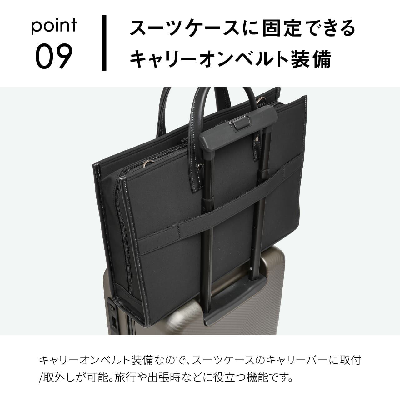 ・スーツケースに固定できるキャリーオンベルト装備