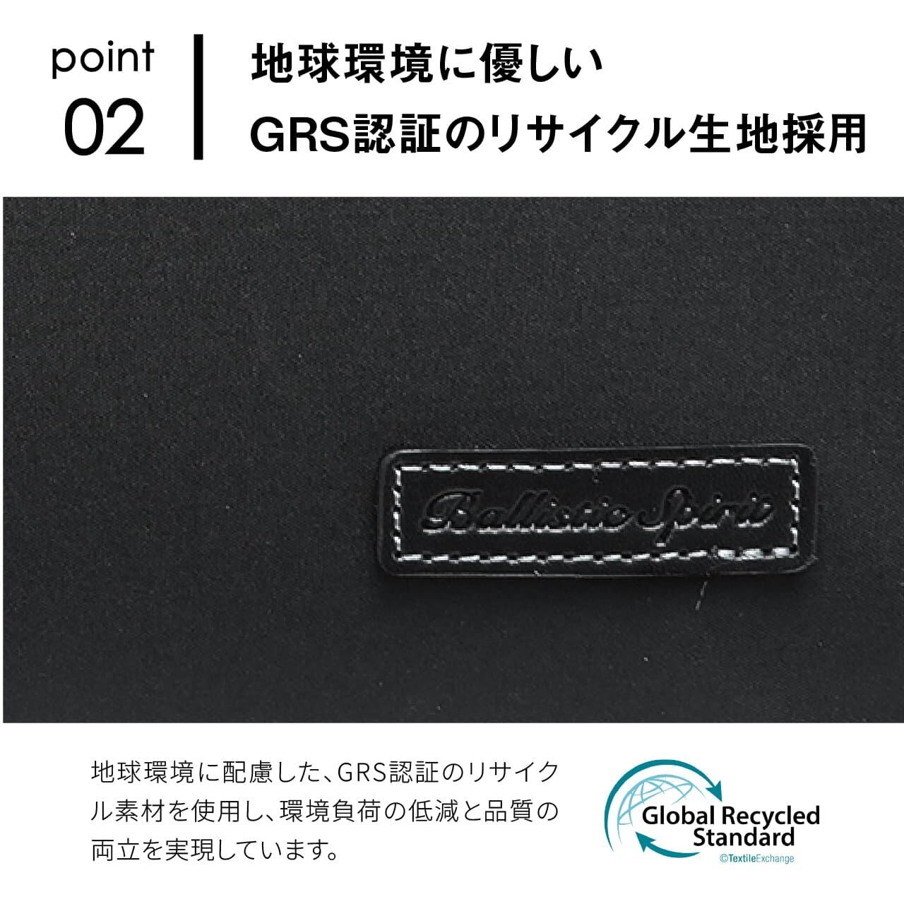 ・地球環境に優しいGRS認証のリサイクル生地採用