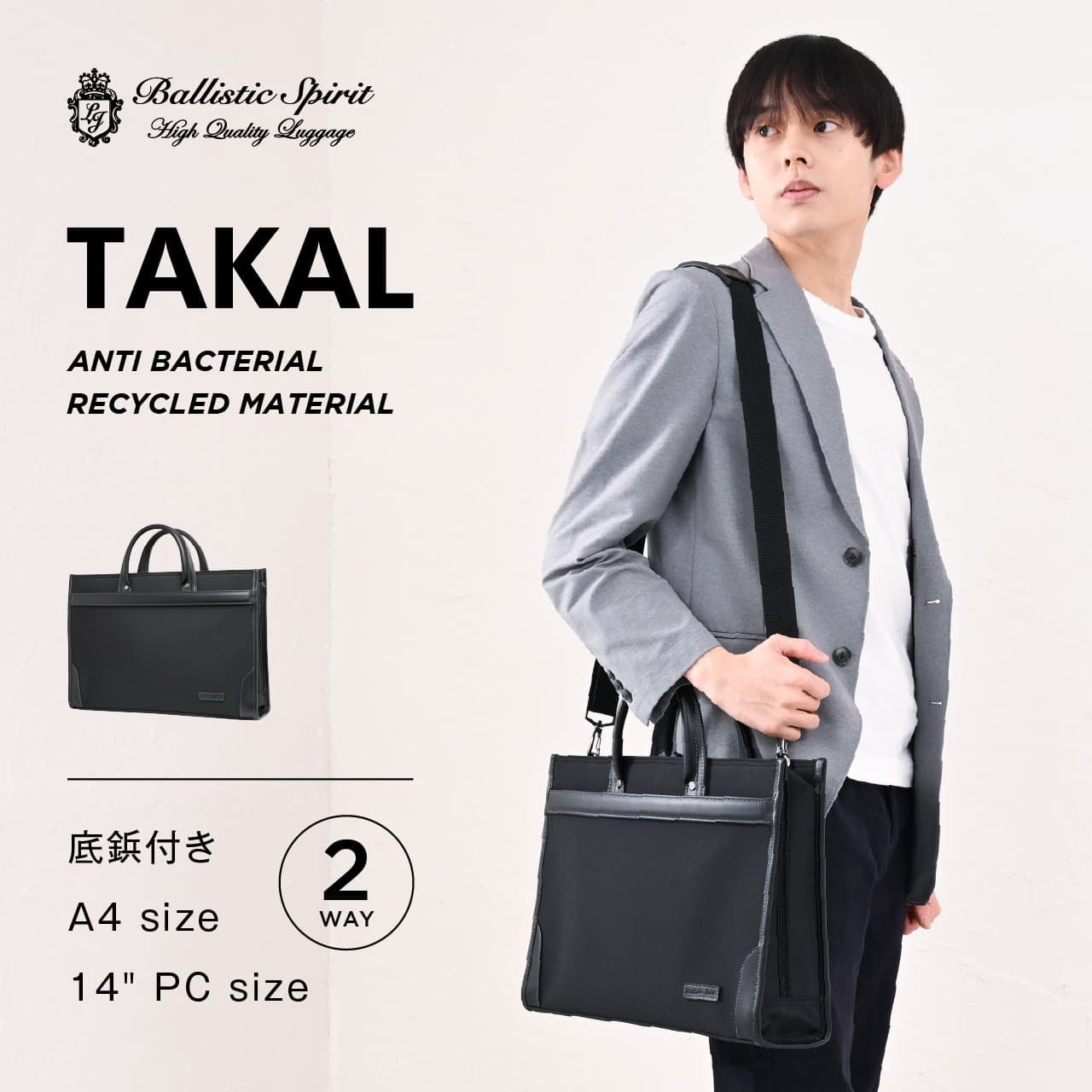 Ballistic Spirit バリスティックスピリット TAKALシリーズ ビジネスバッグ ショルダーバッグ 2way 自立 軽量 A4サイズ 14インチPC BS-3248 通勤 就活 タッカル