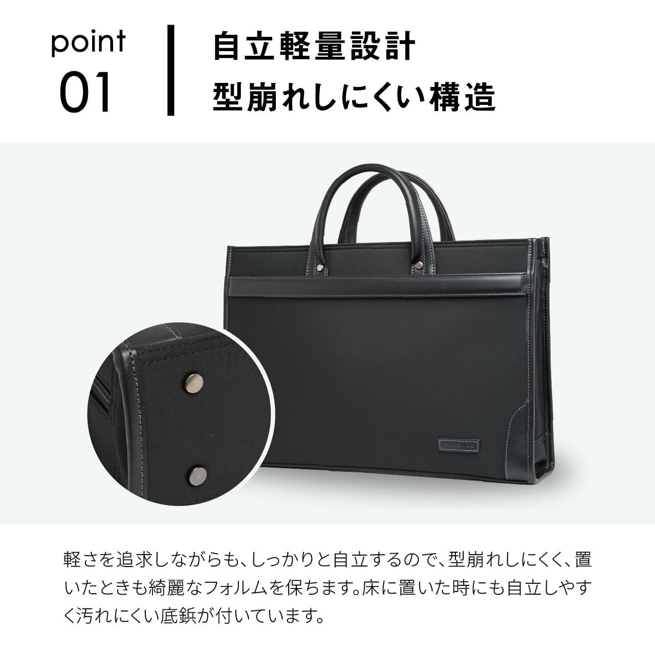 ・自立軽量設計、型崩れしにくい構造