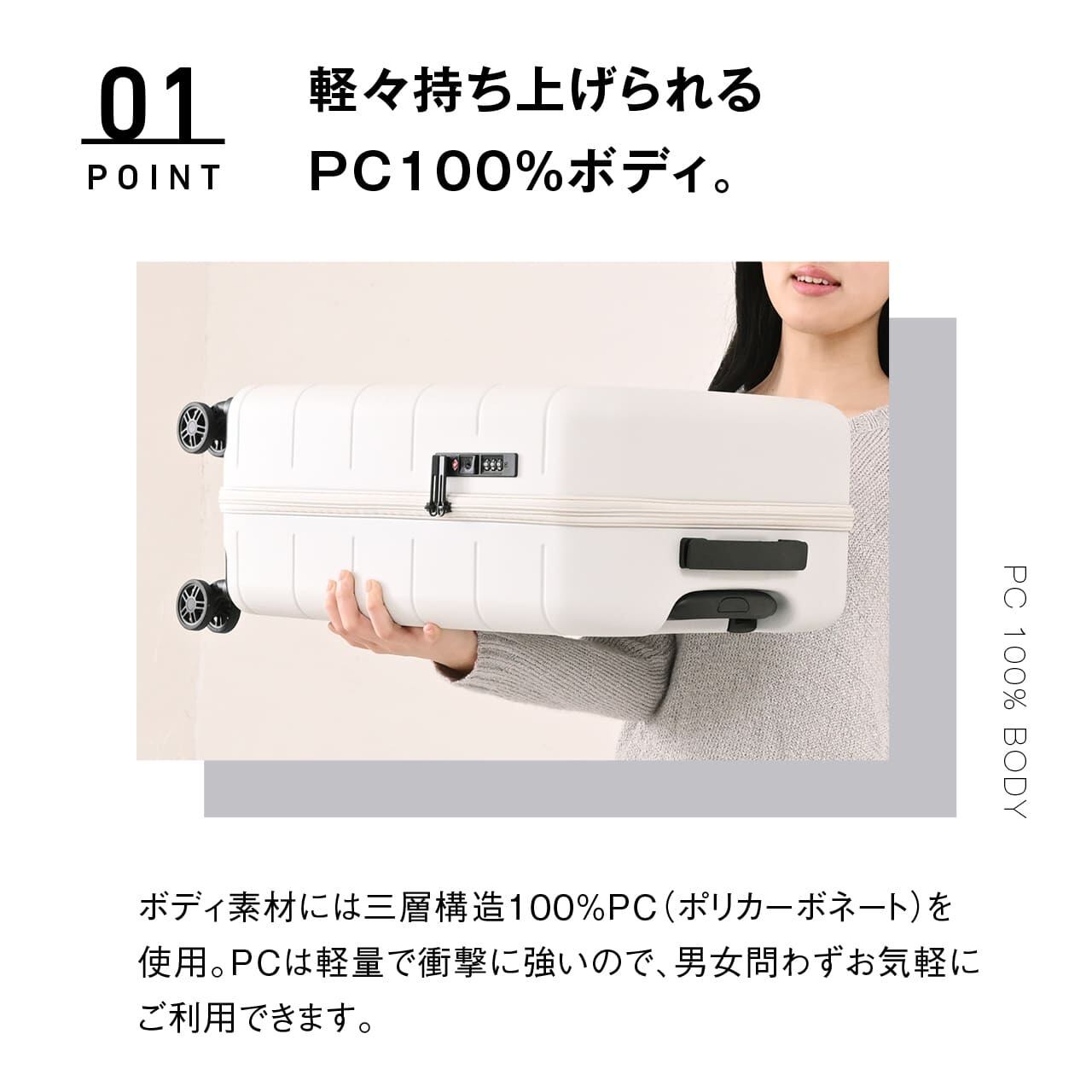 ・軽々持ち上げられるPC100%ボディ
