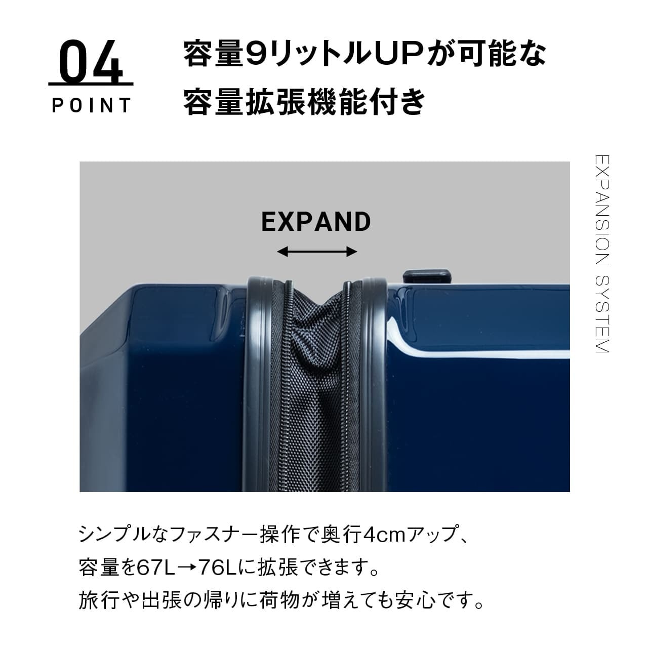 ・容量9リットルUPが可能な容量拡張機能付き