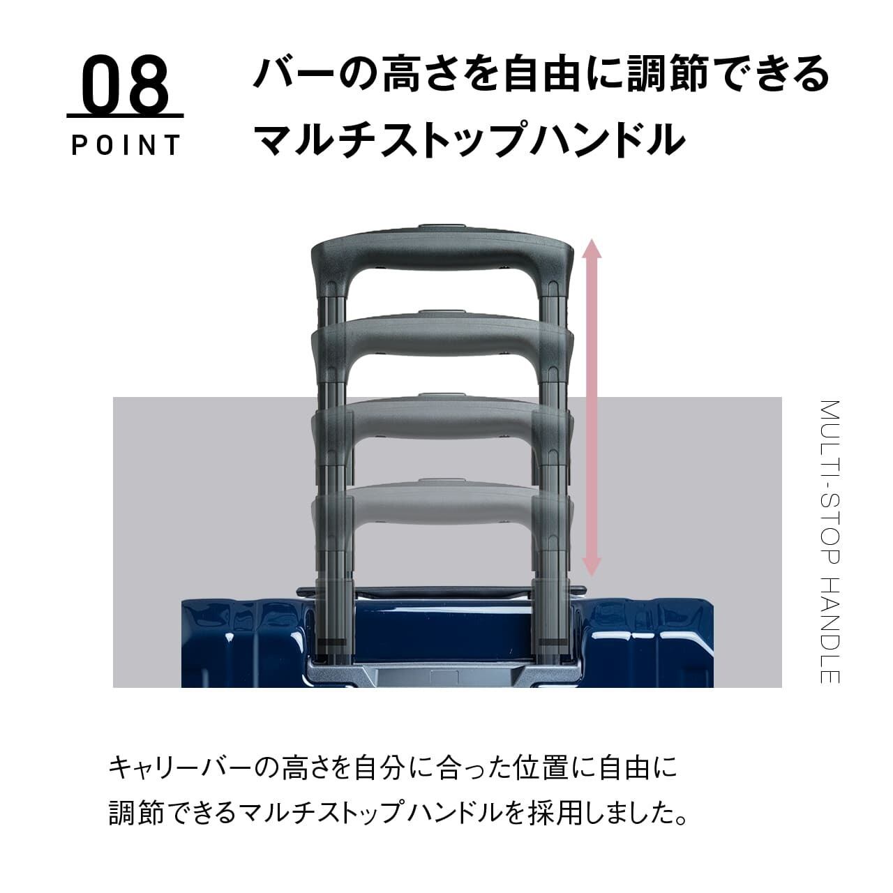 ・バーの高さを自由に調節できるマルチストップハンドル