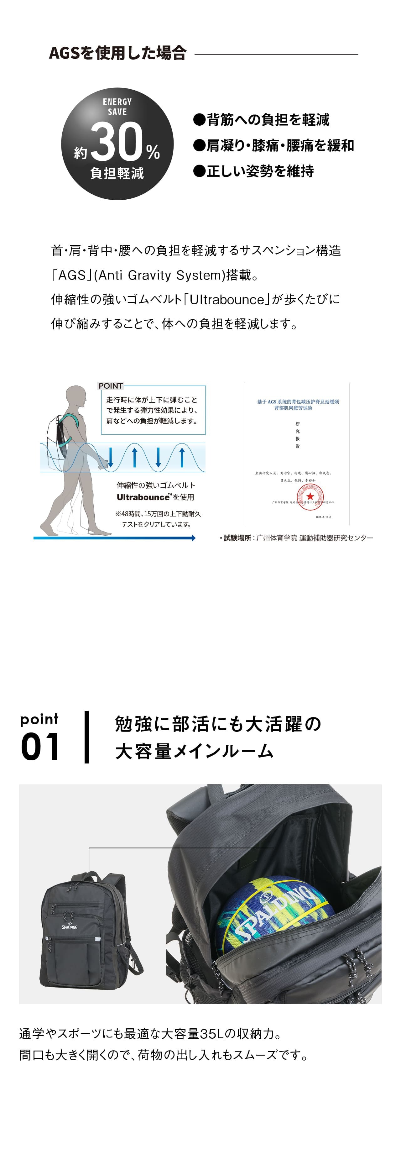 SPALDING スポルディング 大容量で通学にぴったり 身体の負担軽減できる AGSリュック バックパック SP-11141