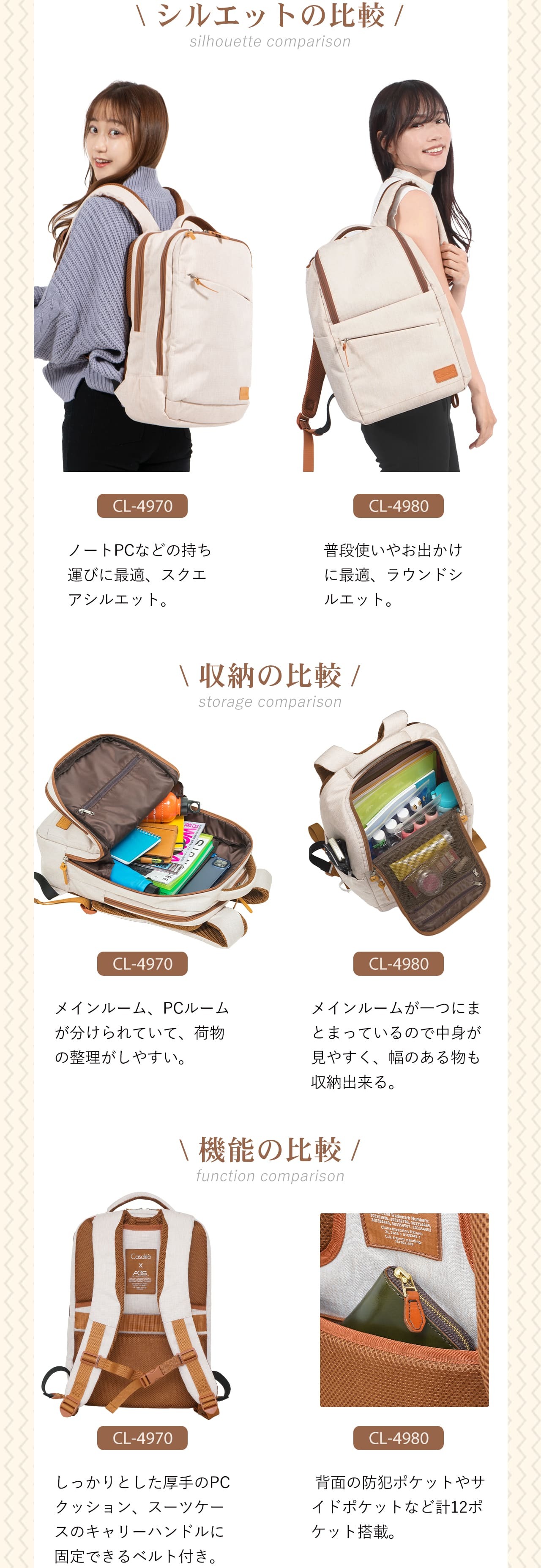 大人女子が輝く、明るく落ち着いた雰囲気のレディースリュック。