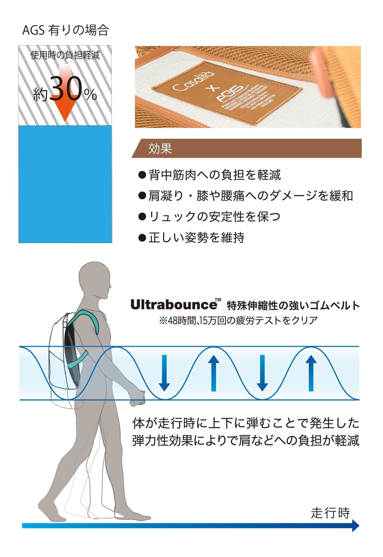 サスペンションのメカニズムを用いたANTI GRAVITY SYSTEM(ags)機能を採用。特殊伸縮性の強いゴムを利用しています。