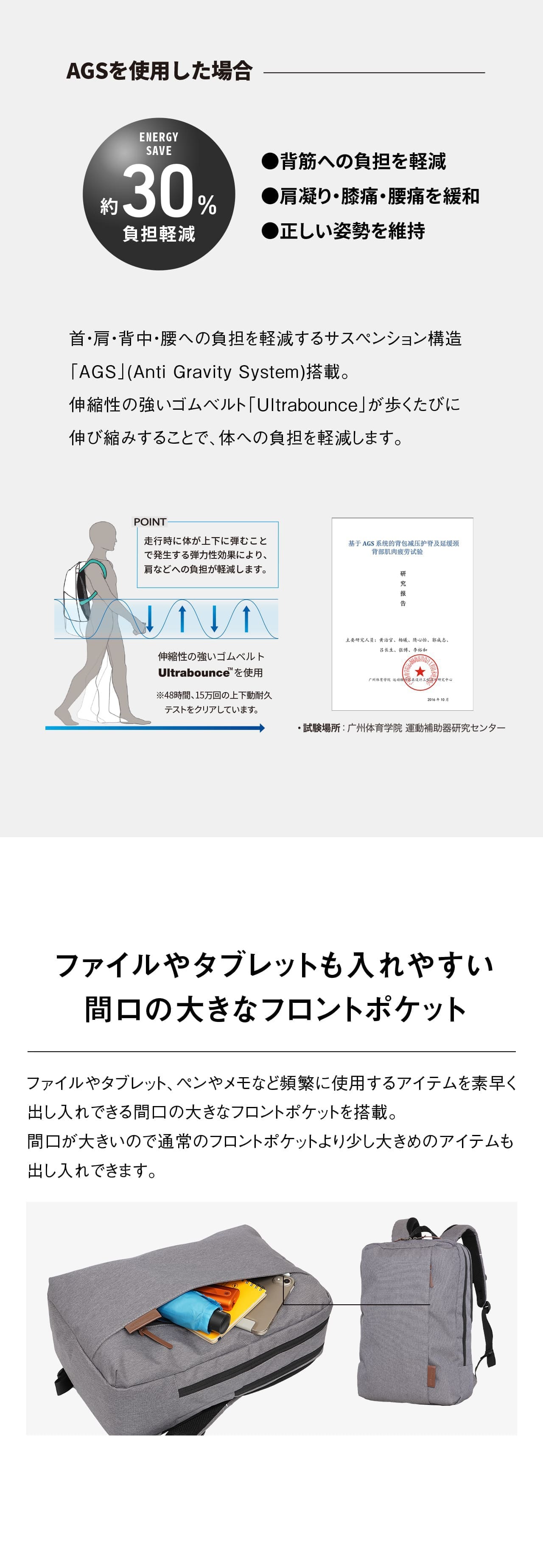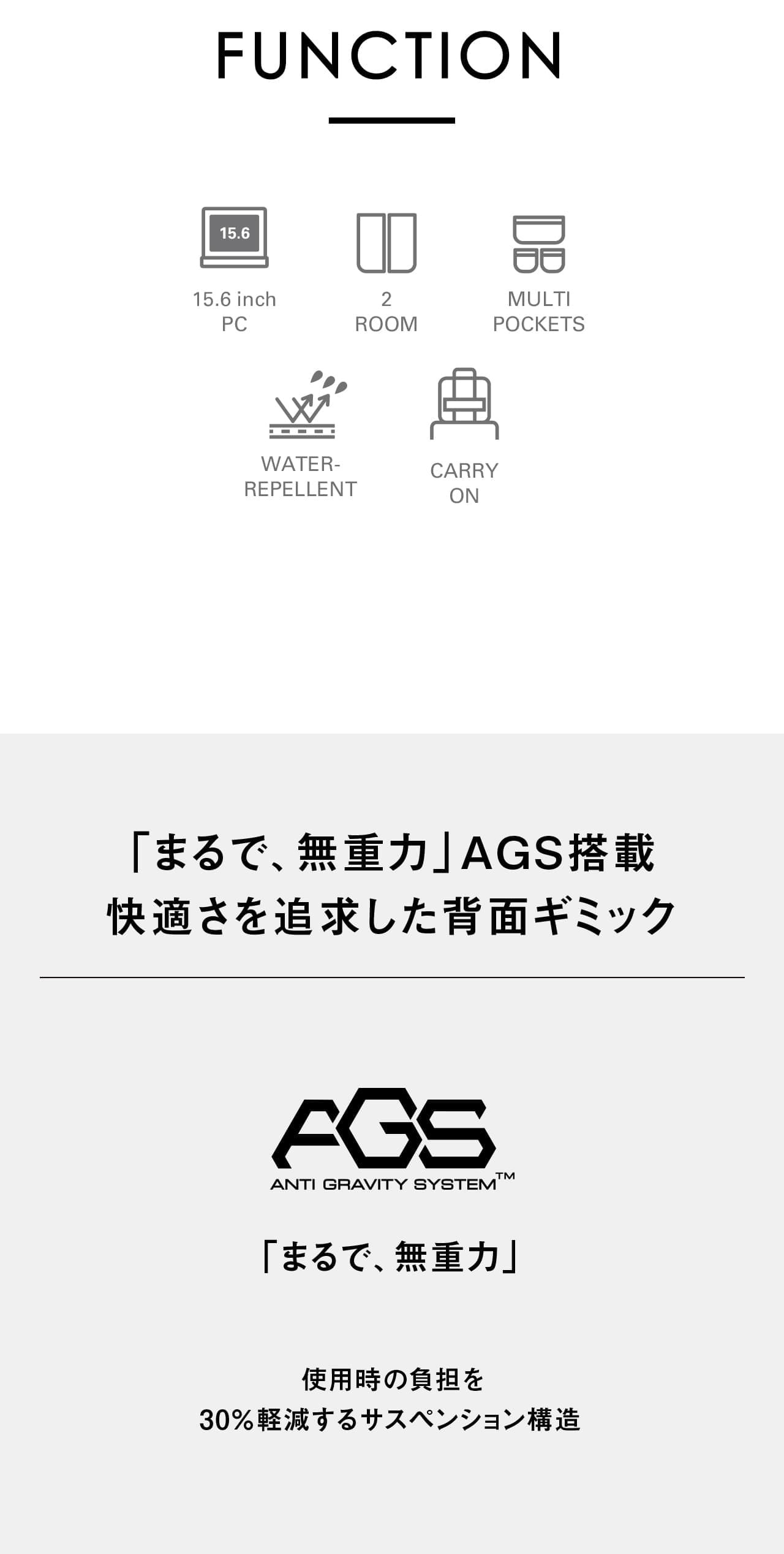サスペンションのメカニズムを用いたANTI GRAVITY SYSTEM(ags)機能を採用。特殊伸縮性の強いゴムを利用しています。