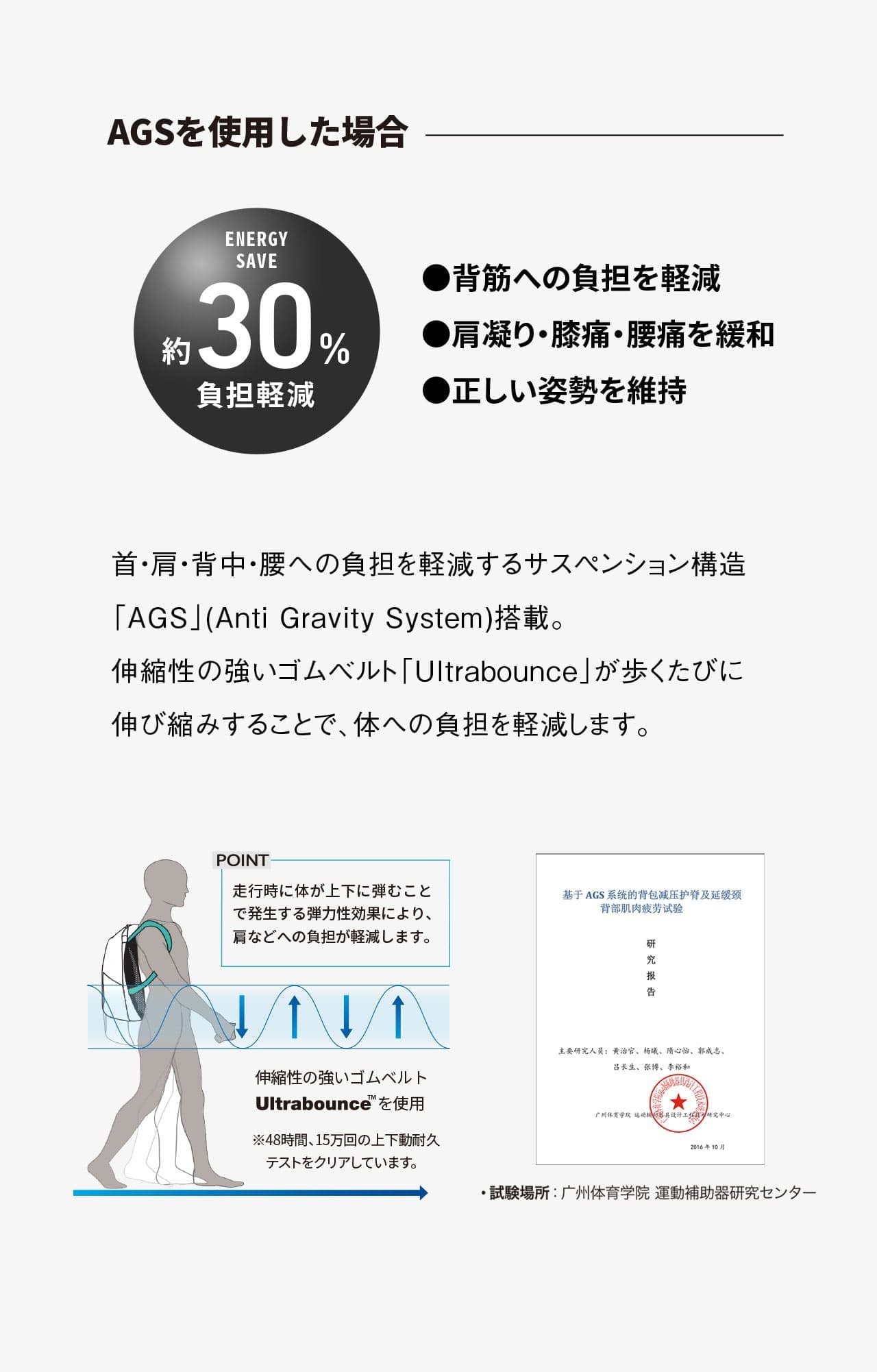 【注意事項】※肩や腰の負担を軽減させるためのAGSサスペンションシステムを採用しているため、衣類の生地との相性で衣類にダメージが加わる可能性がございますのでご使用の際は、お気をつけください。