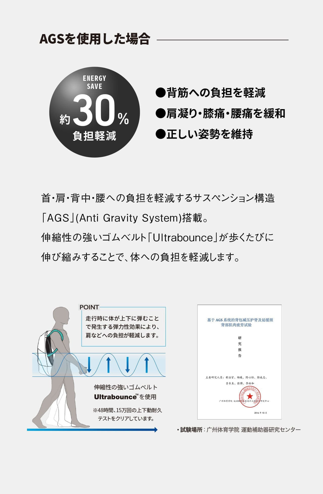 【注意事項】※肩や腰の負担を軽減させるためのAGSサスペンションシステムを採用しているため、衣類の生地との相性で衣類にダメージが加わる可能性がございますのでご使用の際は、お気をつけください。