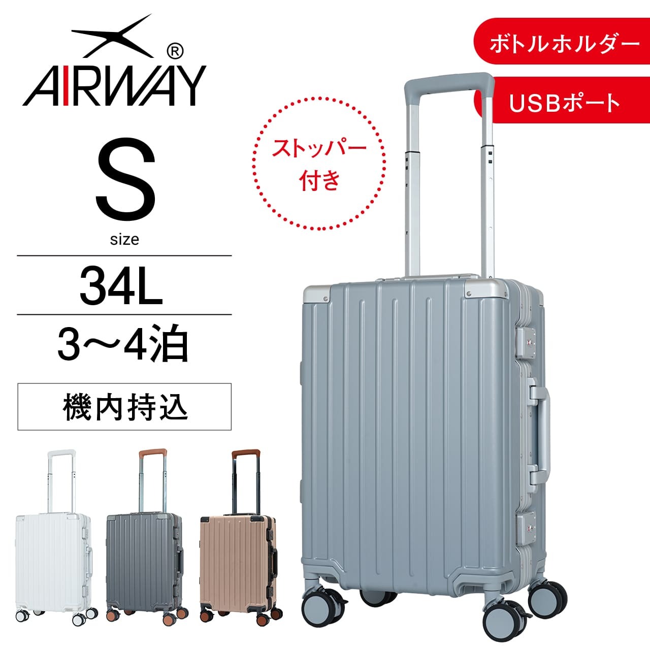 AIRWAY エアウェイ スーツケース 機内持ち込み Sサイズ 34L フレーム ストッパー キャリーケース ボトルホルダー付き キャリーバッグ AW-0884-48