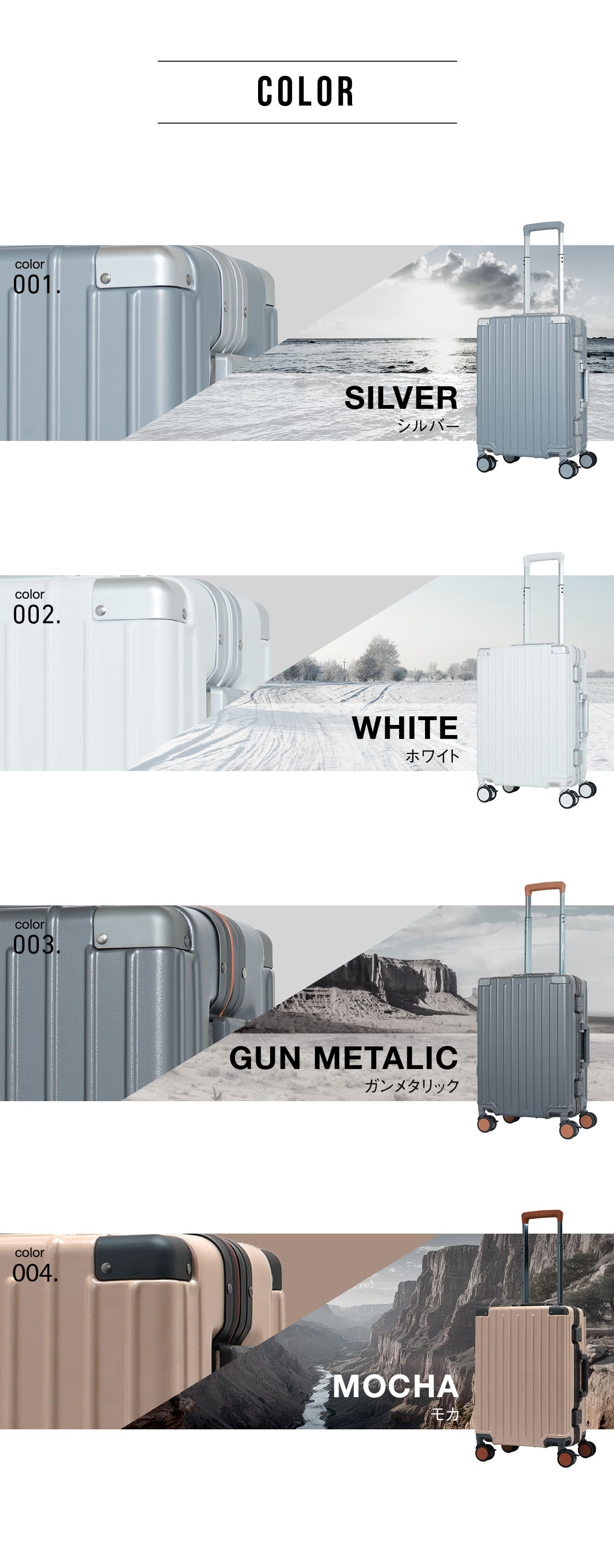 小型でありながら34リットルの収納スペースを備えた、機内持ち込みに最適なサイズです。ハードな素材で頑丈さも兼ね備え、静音性が高くサスペンションキャスターを搭載しています。ボトルホルダーやストッパーなど、旅をサポートする便利な機能が満載です