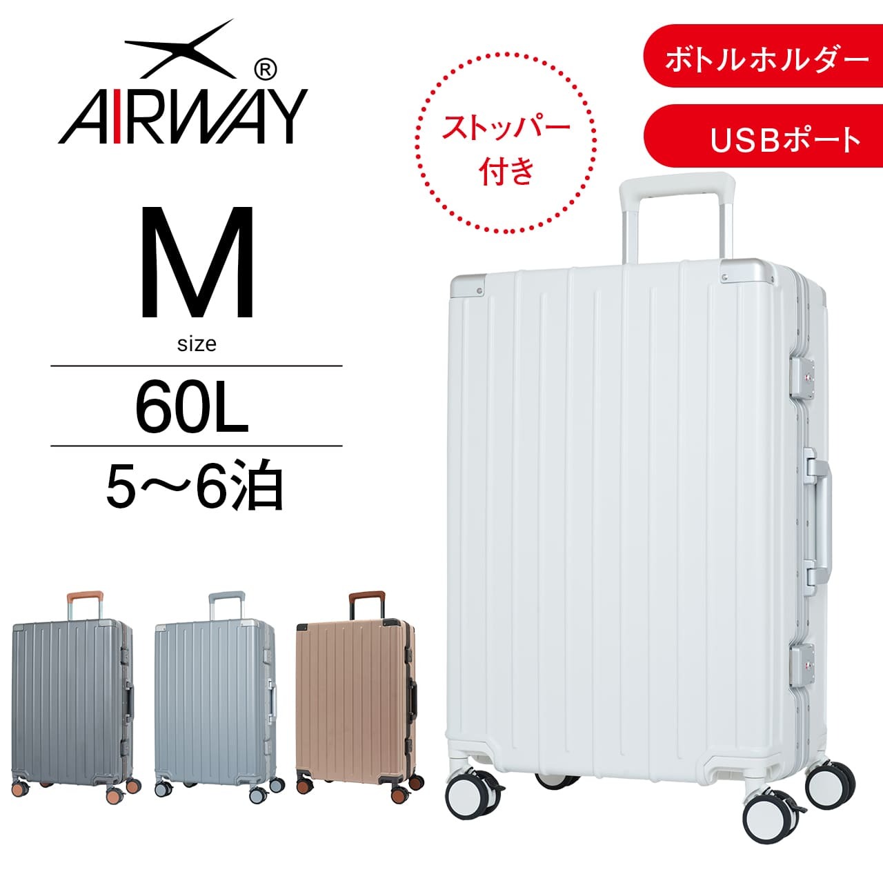 AIRWAY エアウェイ スーツケース Mサイズ 60L フレーム ストッパー キャリーケース ボトルホルダー付き キャリーバッグ AW-0884-60